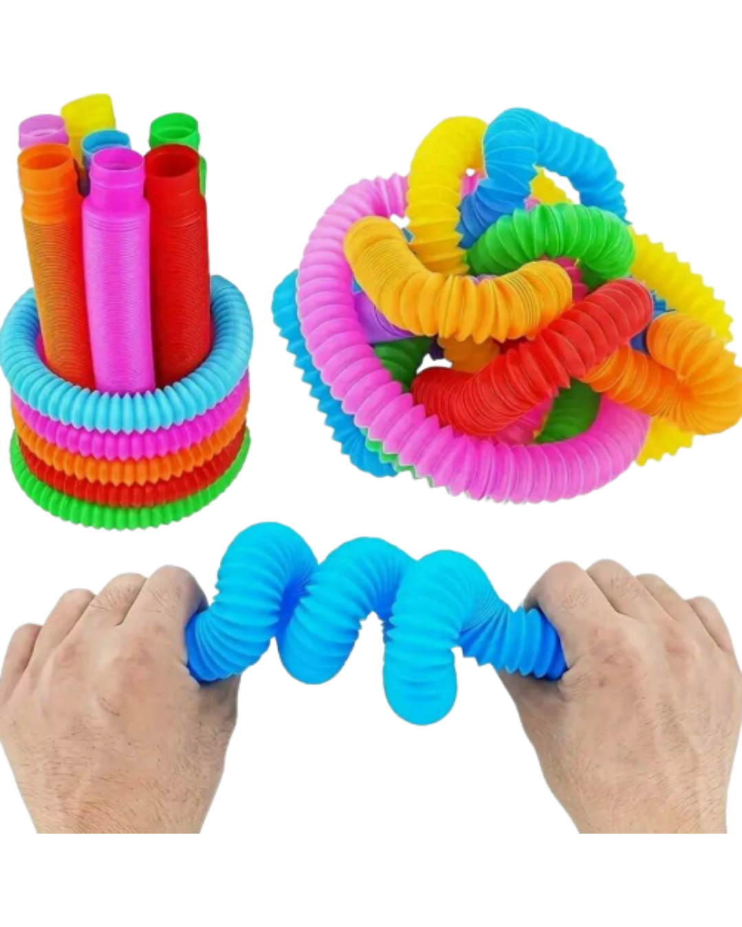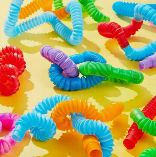 - WHAT YOU GET: Pop tube sensory toys are a great addition to your toy collection because they can also be used as fidgets for kids who are looking for something to do. Green, pink, red, yellow and blue are among the colors available in each set.